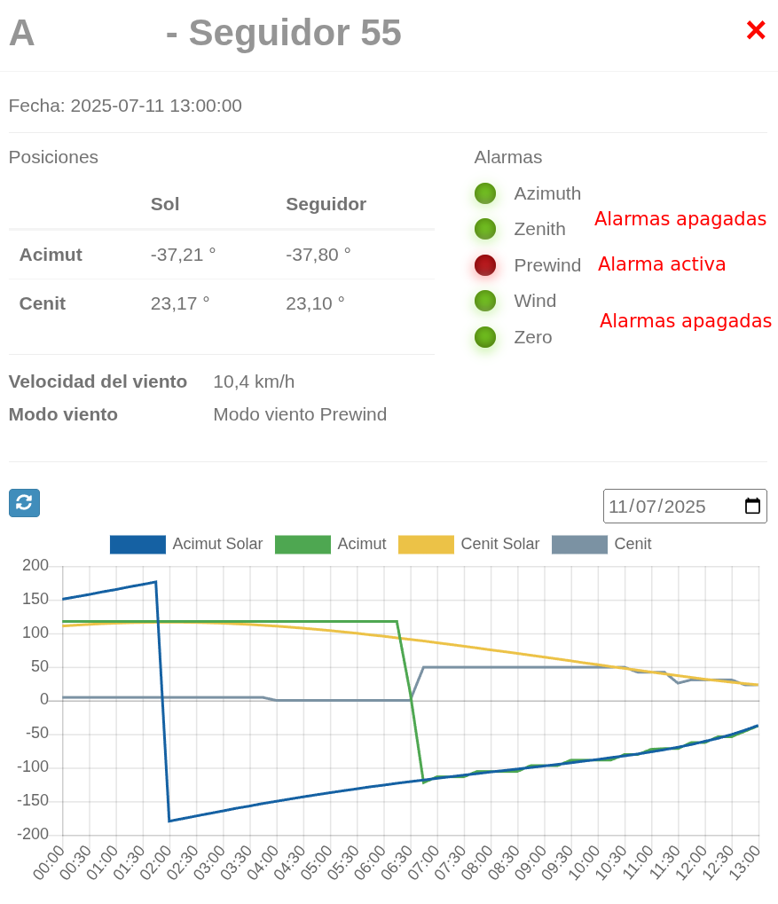 Si lo que desea es saber los datos registrados de un seguidor, o el estado del seguidor y las alarmas en tiempo real::